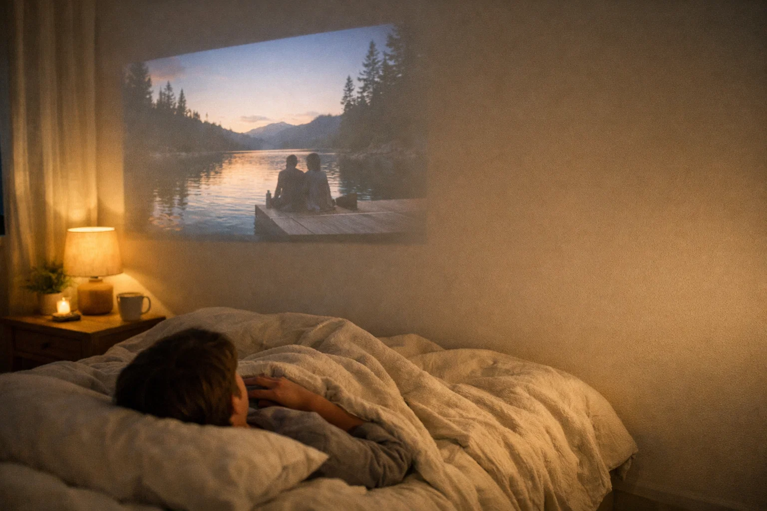 Projektor w sypialni ma sens wtedy, gdy zależy Ci na wieczornym seansie, dużym obrazie i bardziej kinowym klimacie niż przy telewizorze. To dobry kierunek, gdy sprzęt ma budować nastrój po zmroku, a nie tylko działać jak codzienny ekran do szybkiego włączenia. Jeśli zależy Ci przede wszystkim na takim wieczornym oglądaniu, pomocny będzie też materiał o projektorze do filmów.